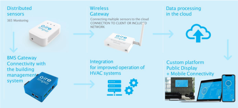 When Aire Limpio decided to carry out the development of an integral indoor air quality platform, the thinking was to seek a partner with a reliable and accurate monitoring platform as the fundamental basis for the entire development. This is the key point that would allow the development of a cloud system, with information regarding the quality of indoor air, that was useful for the occupants in the buildings, while automatic control actions could be executed to have a ventilation and filtration on demand scheme. This is how SMoCAI™ (Sistema para la Monitorización de la Calidad del Aire Interior), the Indoor Air Quality monitoring system, was born. A key point for the project was always to have reliable systems that were easy to implement and that allowed easy integration into the ecosystem of the platform being developed.